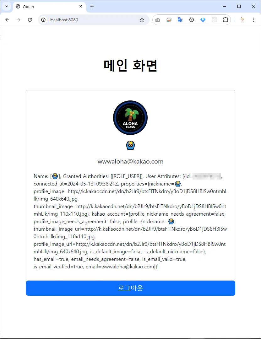 Spring Security, OAuth2 Client ์์กด์ฑ์ ์ฌ์ฉํ์ฌ, OAuth ์ธ์ฆ ์ฑ๊ณต ์, ํ์ ๊ฐ์