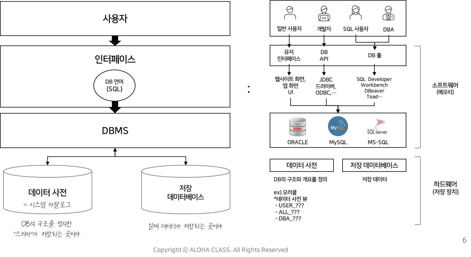 : μ¬μ©μ + μΈν°νμ΄μ€ + DBMS + λ°μ΄ν°λ² μ΄μ€(λ°μ΄ν°μ¬μ , μ μ₯DB)