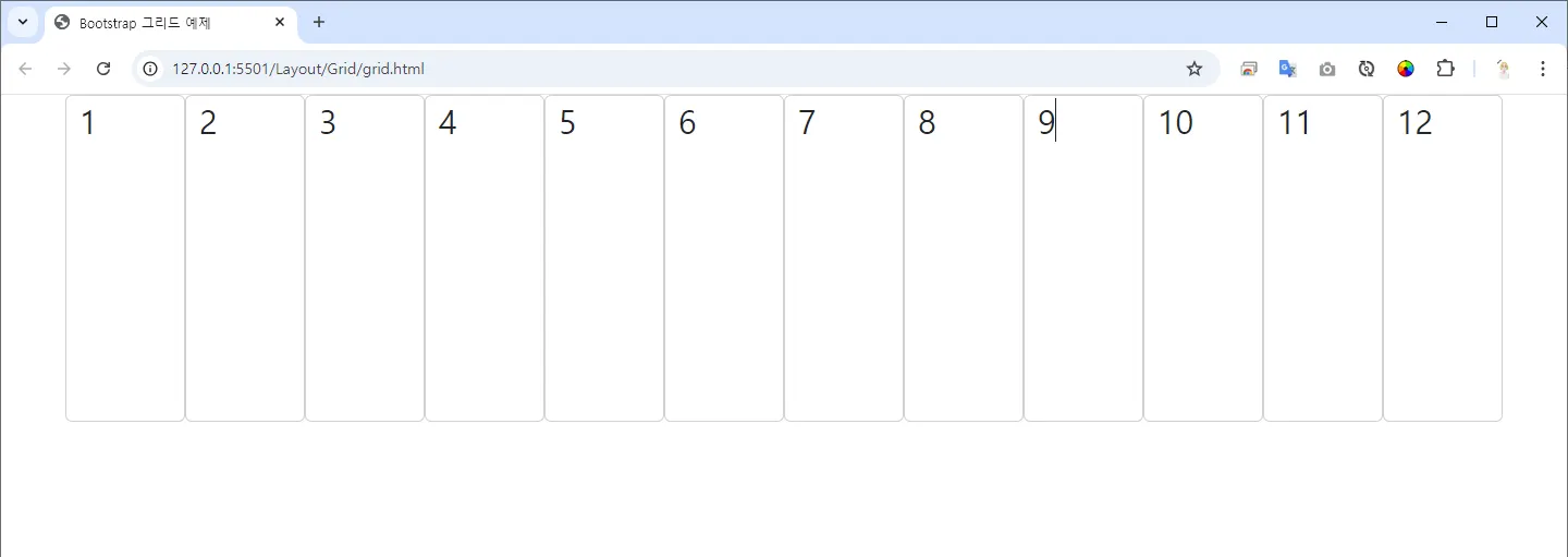 col-xxl-1: XX-Large νλ©΄μμλ κ° μ΄μ΄ λλΉμ 12λΆμ 1μ μ°¨μ§ν©λλ€.