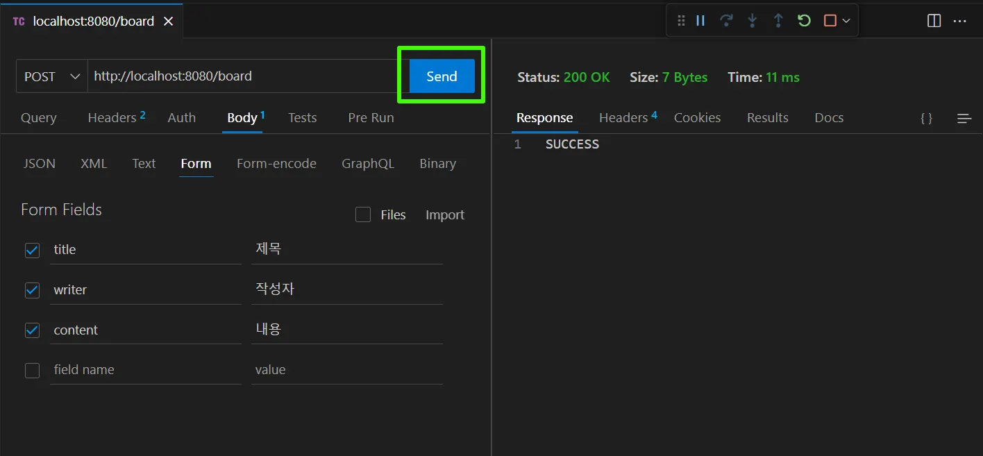 : Thunder Client ์์ ์์ฒญ ๋ณด๋ด๋ ๊ธฐ๋ฅ