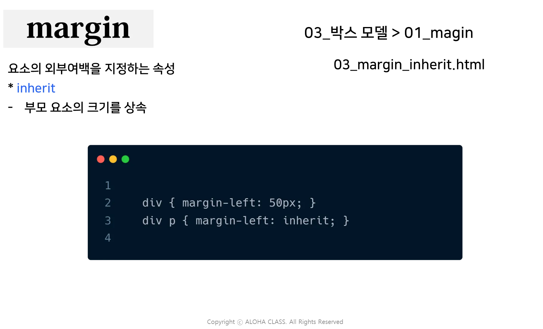 ์์: margin: 10px; โ ์ํ์ข์ฐ ๋ชจ๋ 10px.